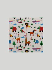 サファリの動物たちを、カラフルで愛らしいタッチで描いたデザイン。