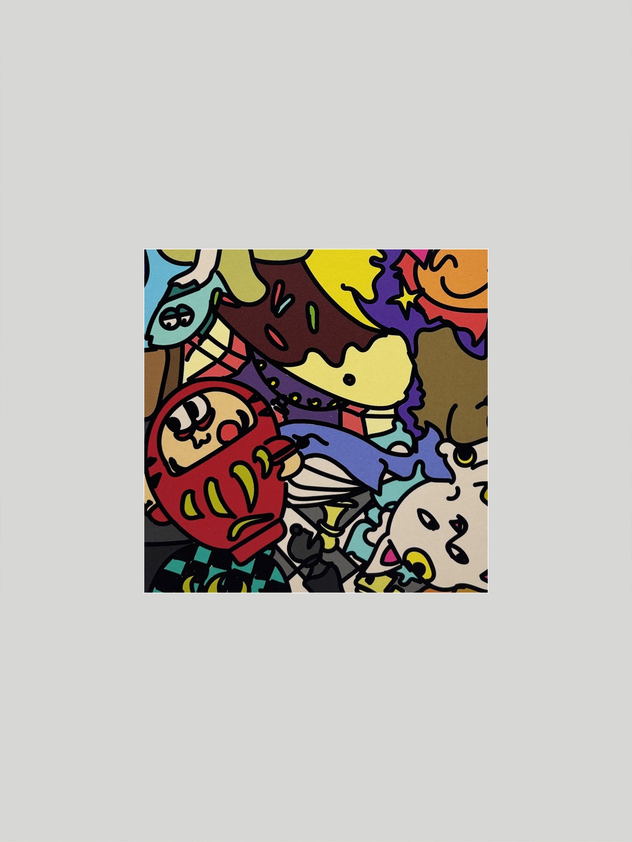 日本のポップカルチャーをモチーフに、キャラクターやモチーフを大胆に描いたデザイン。